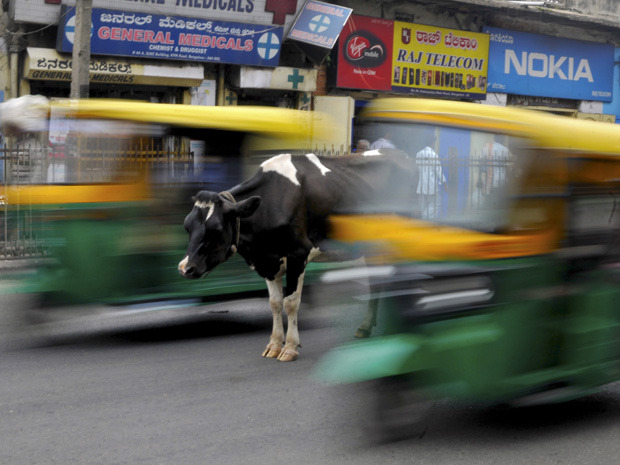 people in north America hate when deer get on roads, but imagine driving around cows!