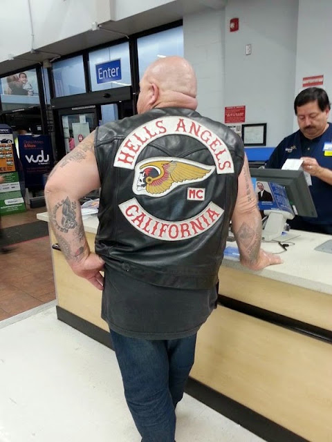 Hell’s angels stood in line for five days at a Wal-Mart in Fresno, to buy every bike that was on the ad, (over 200), to donate to the homeless kids at the Povarello house. This is one of them paying for the bikes.